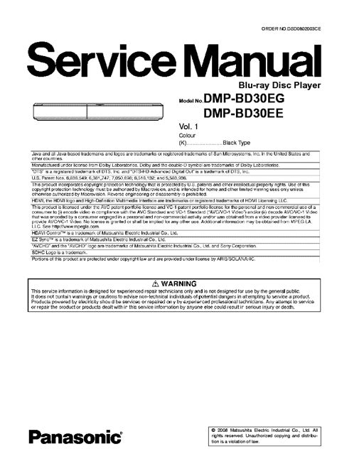 PANASONIC DMPBD30 VOL 1 Service Manual download, schematics, eeprom from elektrotanya.com